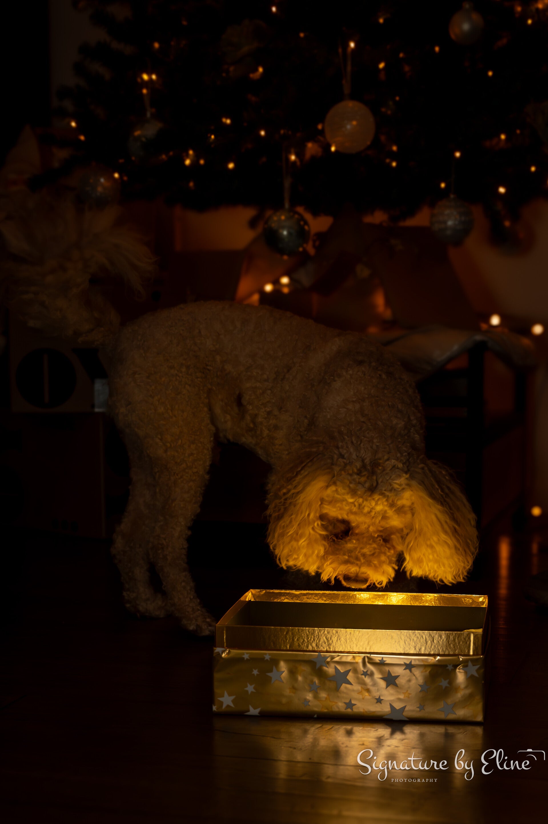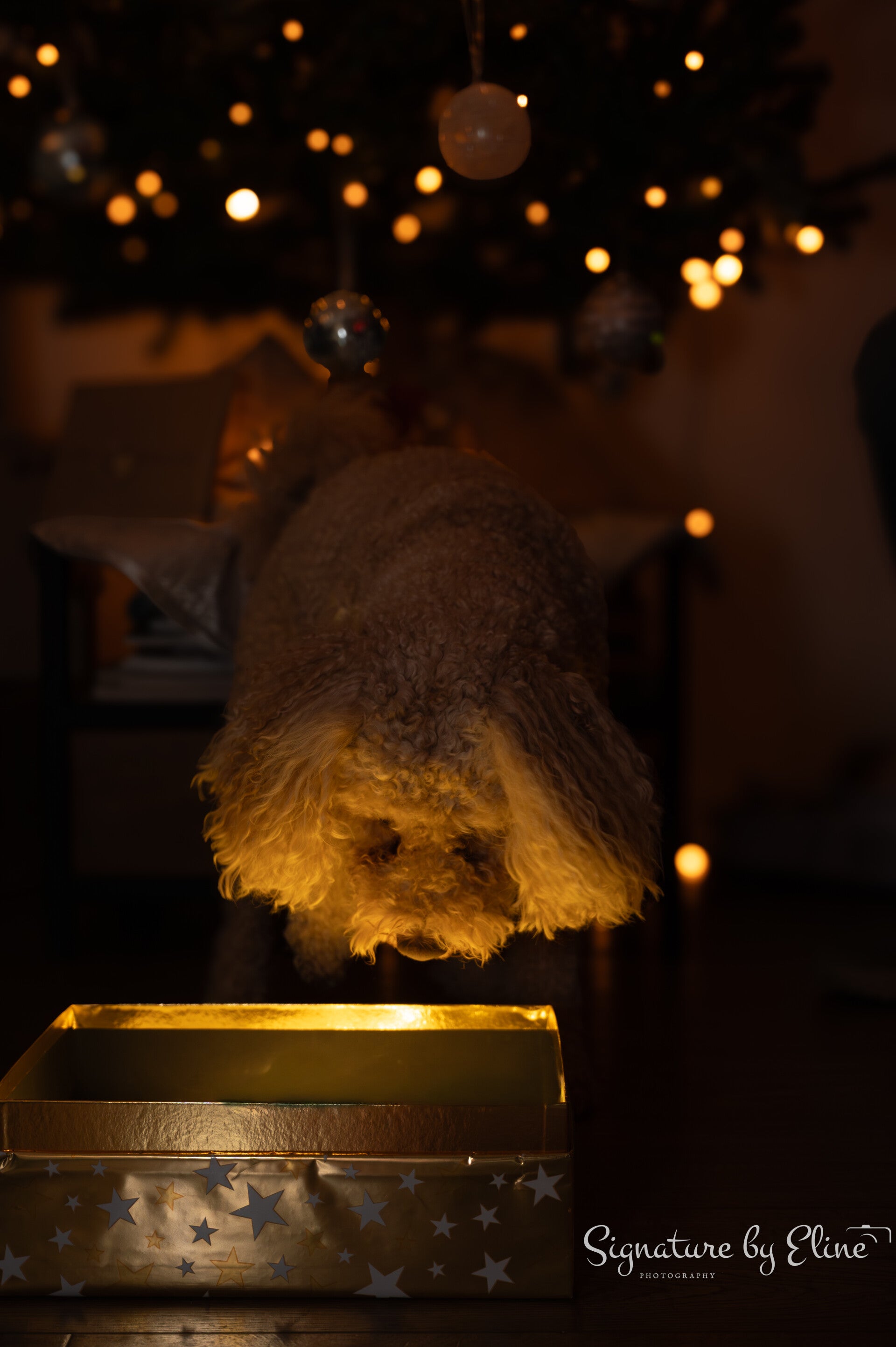 Tijdens deze fotoshoot speelde creatief licht de hoofdrol. De warme gloed van de lampjes, het zachte schijnsel op de vacht en de speelse lichtreflecties maakten iedere foto uniek. Werken met licht rond de feestdagen vind ik altijd een feestje. Het brengt sfeer, diepte en een vleugje magie in elke opname.